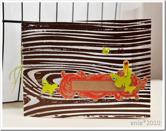 Scenic Route paper (loves!) – it’s more than a year old (and SR is no more :( ), embellished w/Hambly rub-ons and another Hambly Kraft-sticker, aswell as cute felt-butterflies I got from Eli long time ago (Christmas –08 wasn’t? :) ). My non-scrappy item here is the borders made from filmrolls – I cut out the borders.