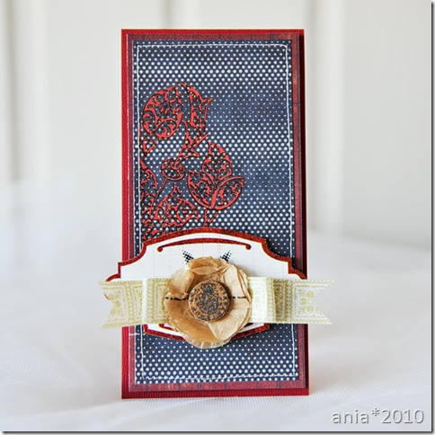 Here’s the second card – a more generic one. It sort of feels a bit nautical. The trend I was focusing on was banner-ribbons. It’s such a cute touch to any project. Here the banner is made of the Pink Paislee Artistan Tape.